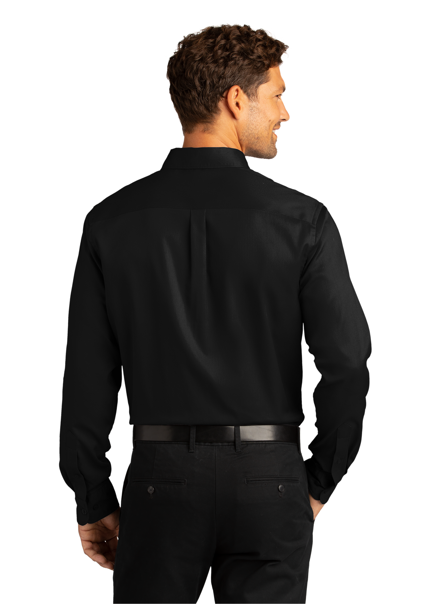 BODY LENGTH: Starting at the center back of your neck, measure straight down to where you want the bottom of the shirt to end.