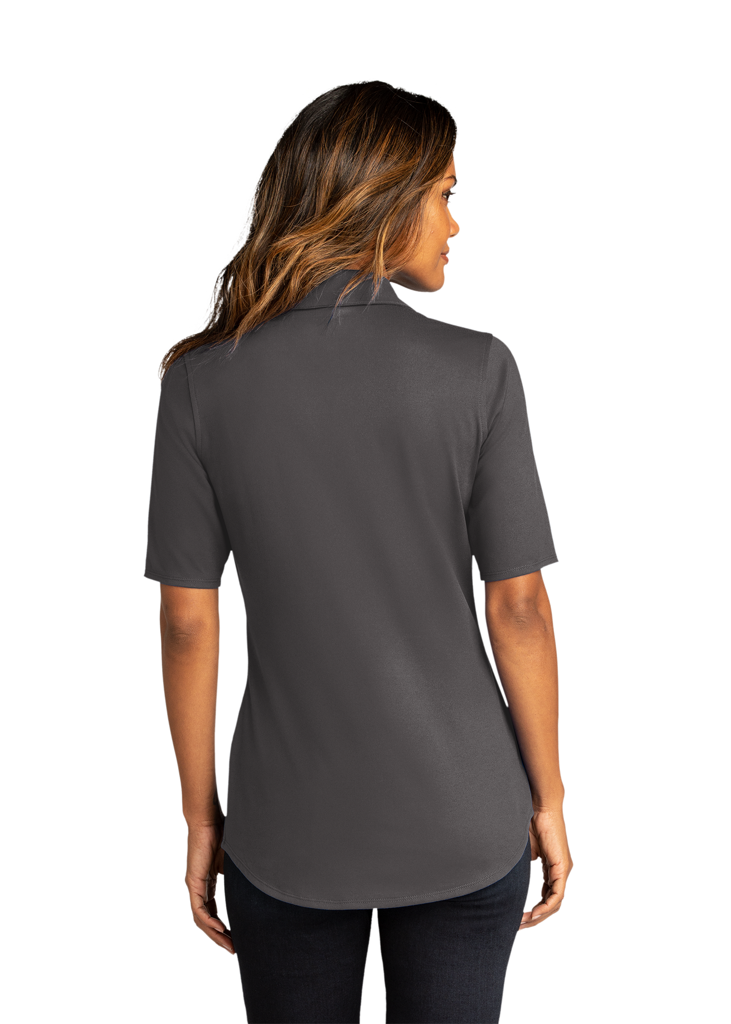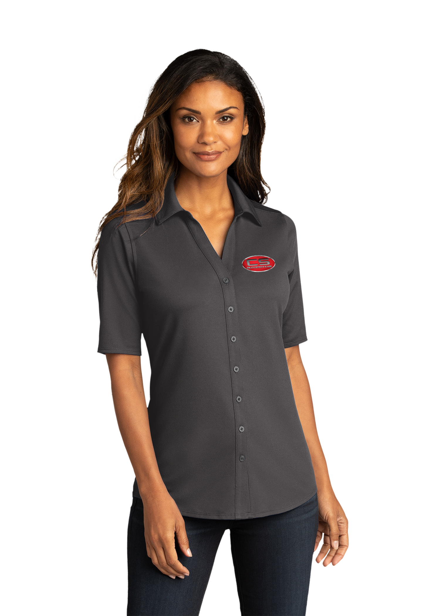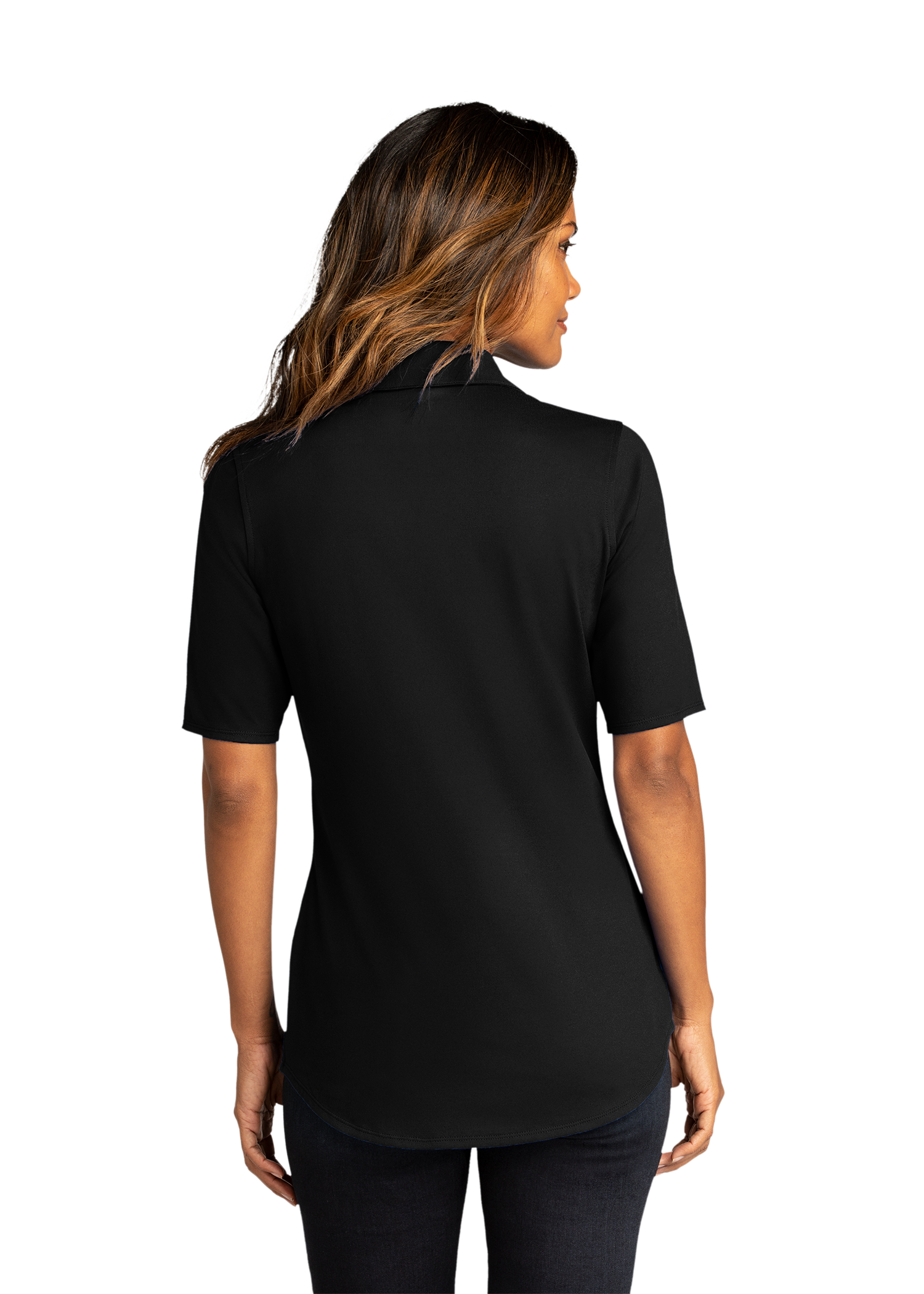 Our City Stretch Top seamlessly combines performance and professionalism. Made with moisture-wicking and odor-resistant material, this top is snag-resistant and boasts a stretch fit for added comfort. The Y-neck collar and full-button placket give it a stylish touch, while the slightly curved and drop tail hem provide a flattering fit. Perfect for the modern woman on the go.