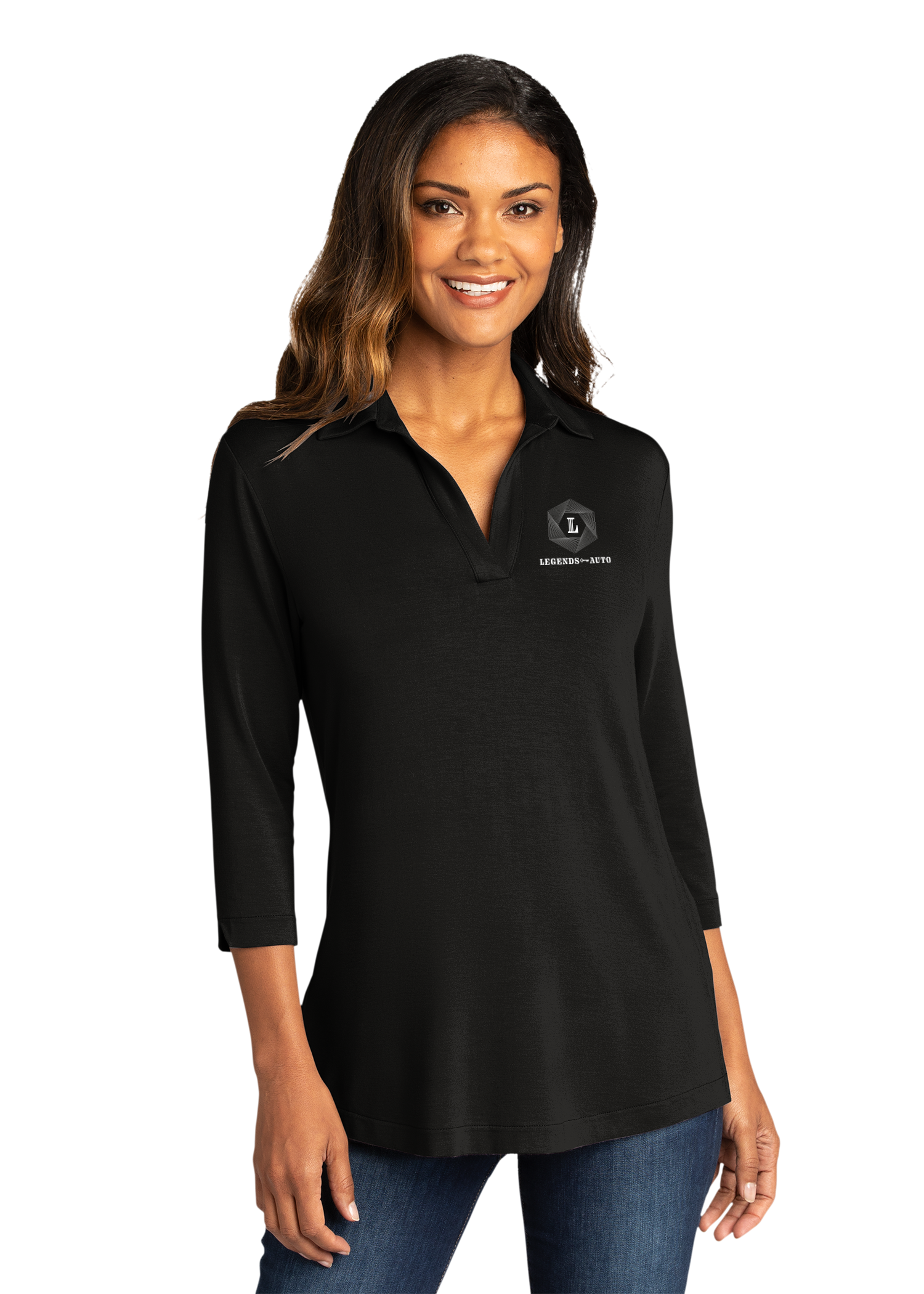 Elevate your everyday style with our Women's Luxe Knit Tunic. The longer length provides coverage and a polished look, while the stretchy and machine-washable fabric ensures all-day comfort. Featuring a self-collar with a collar stand, a buttonless front placket, and stylish notch details on the sleeve cuffs.