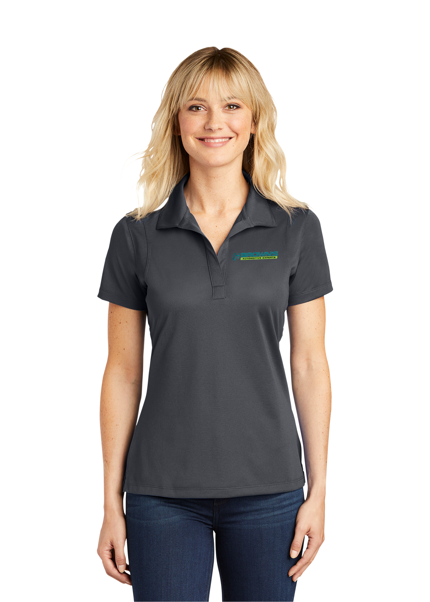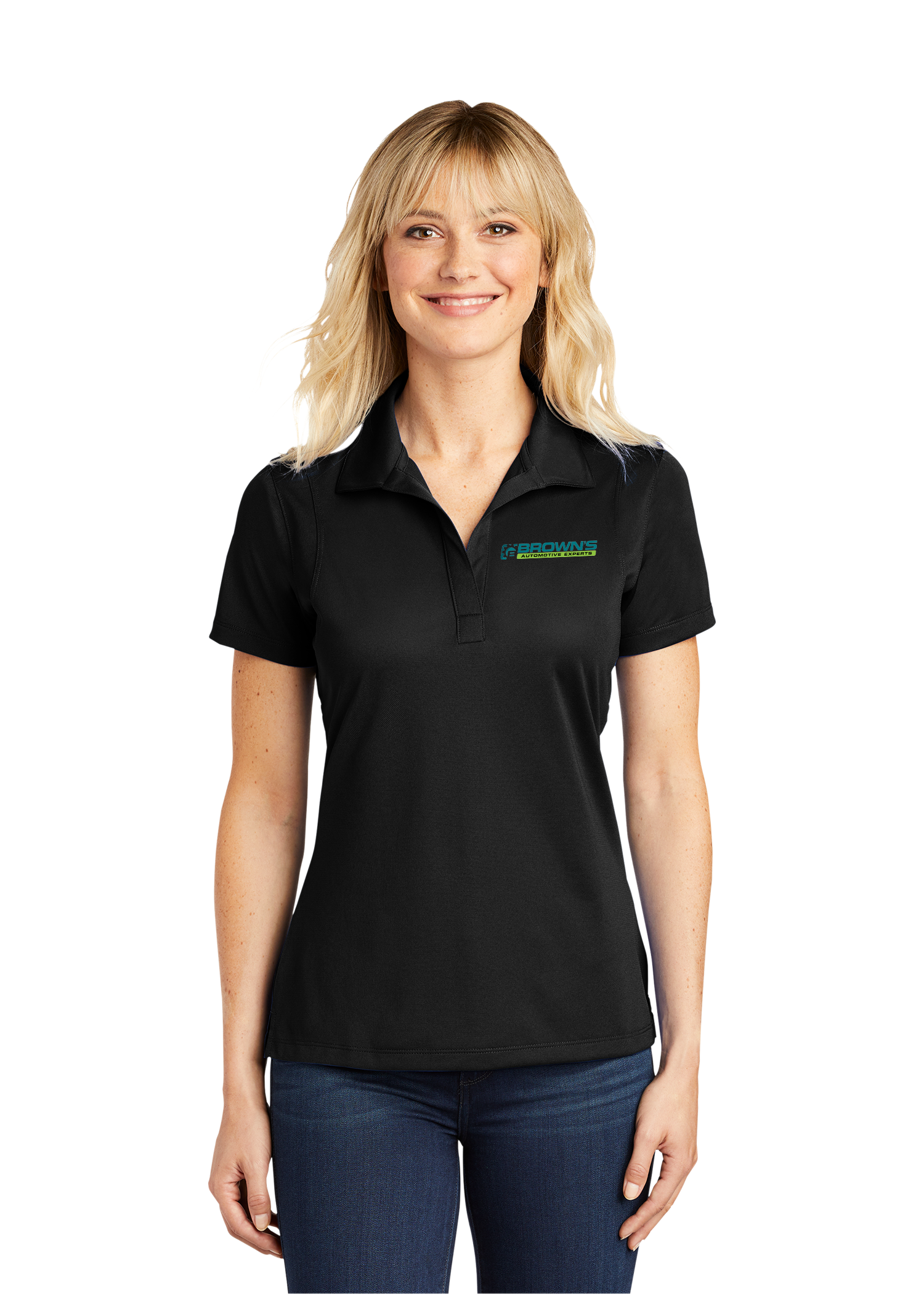 The ST650 Women's Performance Polo resists snags and is moisture wicking.